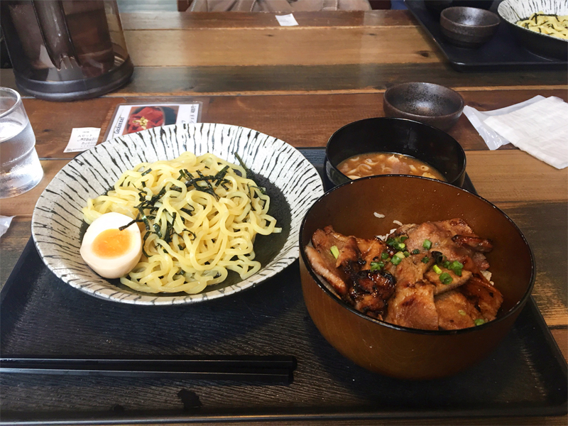 写真が注文した「豚丼とつけ麺」のセットになります。豚丼のたれは甘さが私には丁度いい感じで一気に完食してしまいました♪ つけ麺のスープは魚介ベースの物でダシが効いていて風味抜群でこちらも完食(スープも飲み干して)させてもらいました。