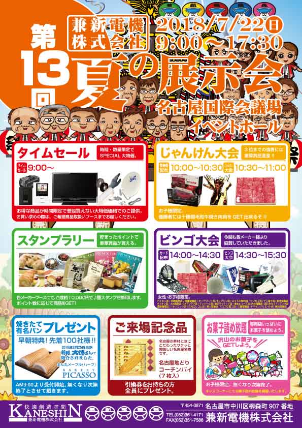 来月の7月22日(日)に兼新電機株式会社主催の第13回夏の展示会が開催されます。